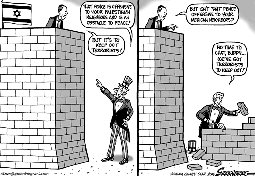 About this cartoon: With the growing debate over illegal immigration came a call to build, expand and reinforce a border with Mexico, perhaps in the form of walls. We're not the only nation dealing with issues of border walls.